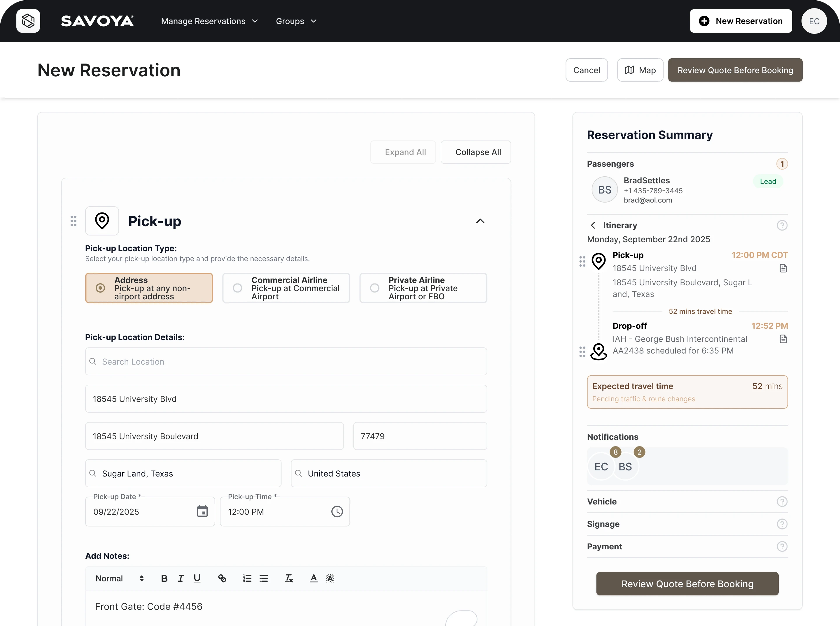 If you have an urgent or last-minute travel need, we’re here to help. Our dedicated Client Care team is available 24/7 to assist with prompt, concierge-level service via phone, email, or online chat. They can be reached at clientcare@savoya.com or +1 214.969.0000